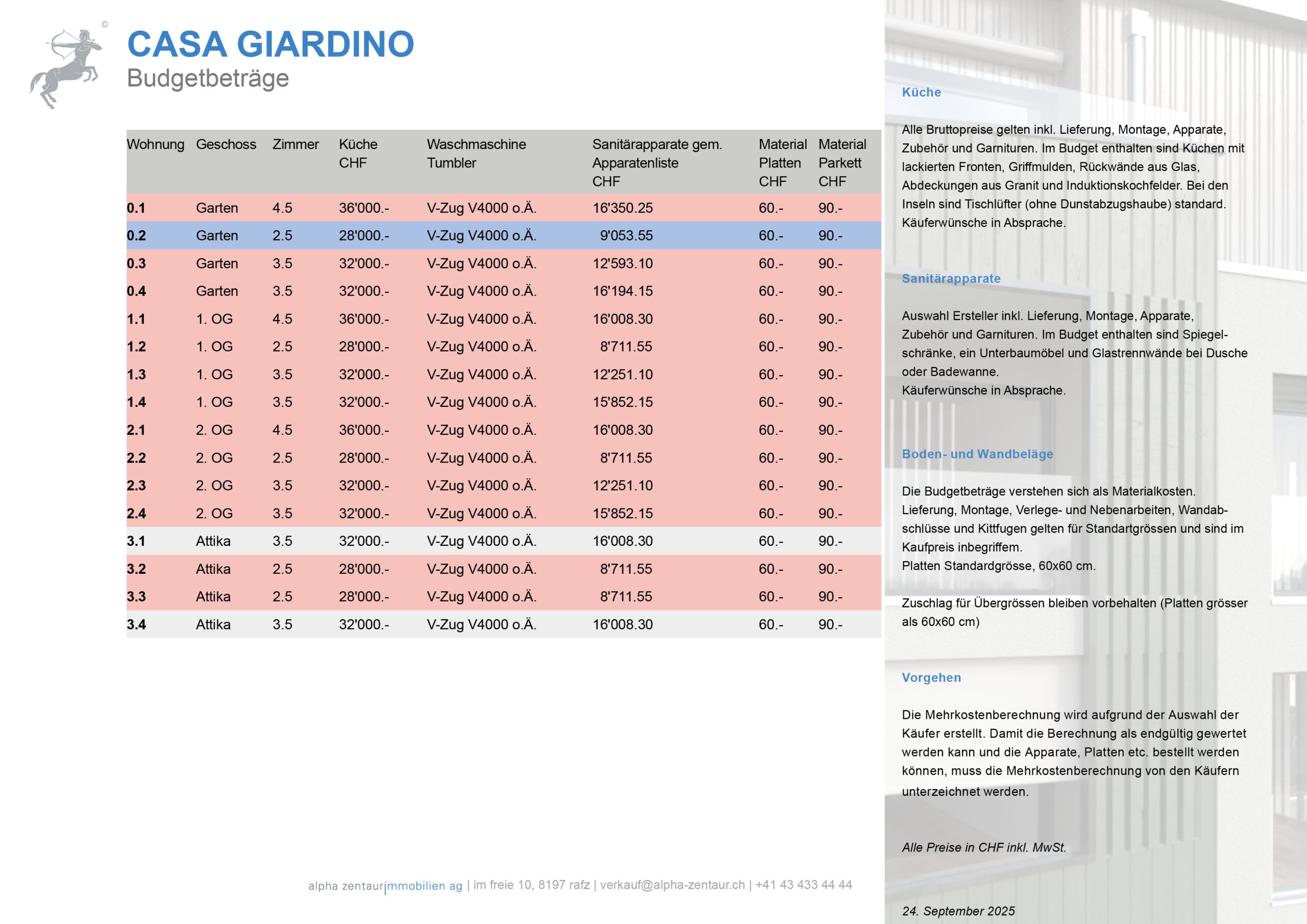 Alle Preise und wichtigsten Eckdaten zu jeder Wohnung im Überblick: