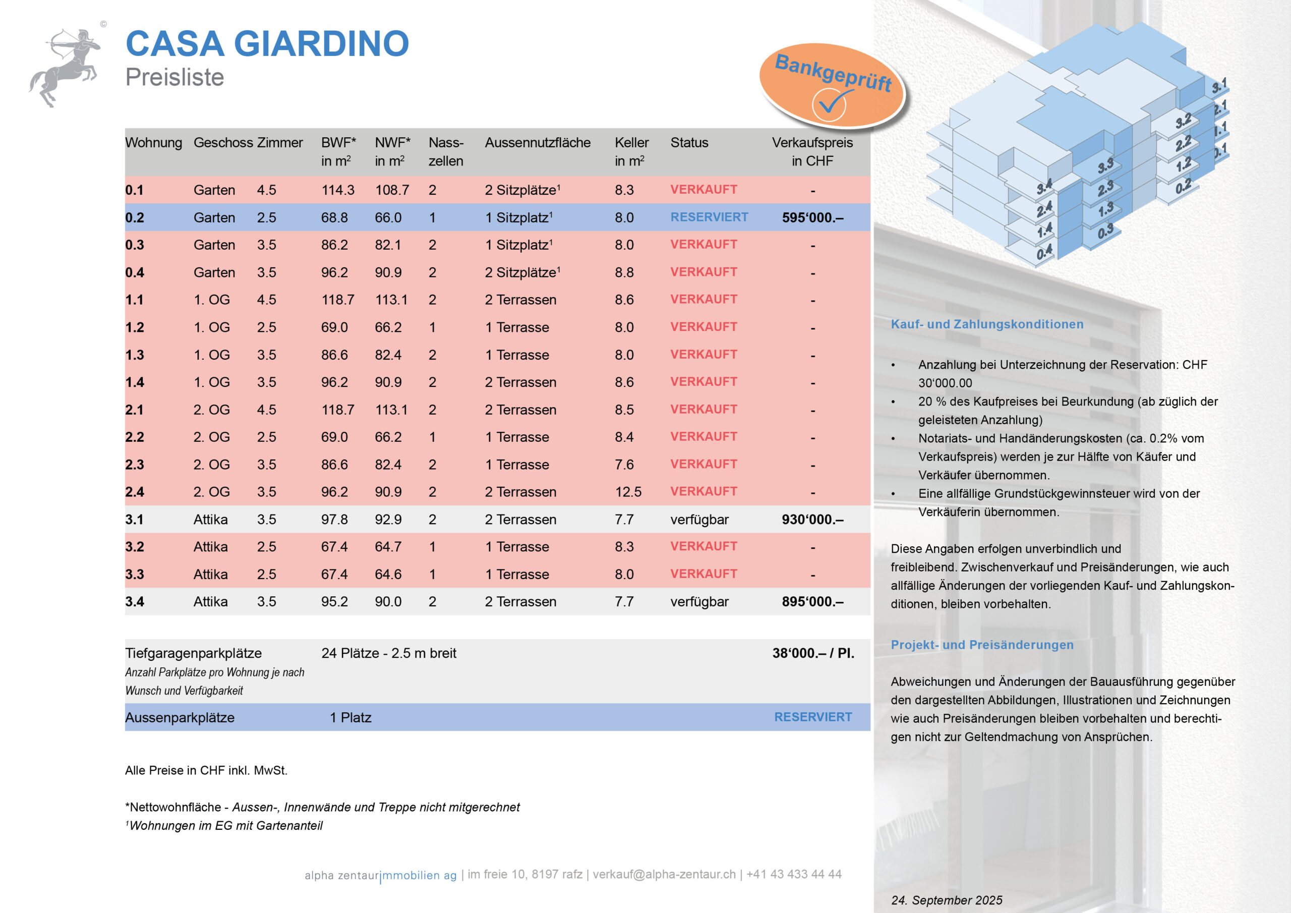 Tiefgaragenparkplätze24 Pl.CHF 38’000.- /Pl.